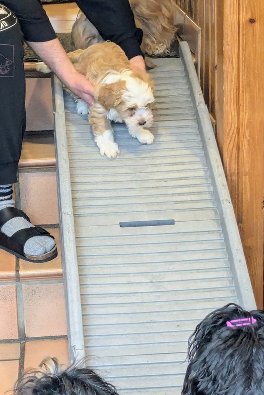 Noch einmal alle 28 Pfötchen ausrasiert und die Leinen und Halsbänder liegen auch schon bereit...